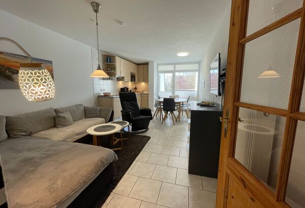 Das Haus Dortmund in Cuxhaven Duhnen bietet eine gemütliche Ferienwohnung, die Wohnung 18 für bis zu 6 Personen. Die Wohnung 18 im 1.Obergeschoss, verfügt über eine Größe von 63 m². Sie besteht aus einem Wohnzimmer mit gemütlichem Ecksofa (dass als Schlafsofa genutzt werden kann), einem Essplatz, einer modernen Küchenzeile mit Cerankochfeld, Backofen, Mikrowelle, Kühlschrank mit Gefrierfach, Toaster, Wasserkocher, Kaffeemaschine, Teller, Tassen und diversen Küchenutensilien. Vom Flur aus gelangt man in das Gäste WC mit Waschmaschine und über eine Treppe in das Obergeschoss. Hier befinden sich neben einem Bad mit Dusche und WC, ein innenliegendes Schlafzimmer, das 2. Schlafzimmer mit Doppelbett und Schrank.