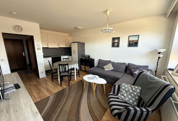 Die Wohnung 214 befindet sich in einer kinderfreundlichen Ferienanlage. In nur 800 Metern erreichen Sie die Nordsee mit dem Sandstrand, die Promenade, diverse Restaurants, Einkaufsmöglichkeiten, die Duhner Heide und Wanderwege.